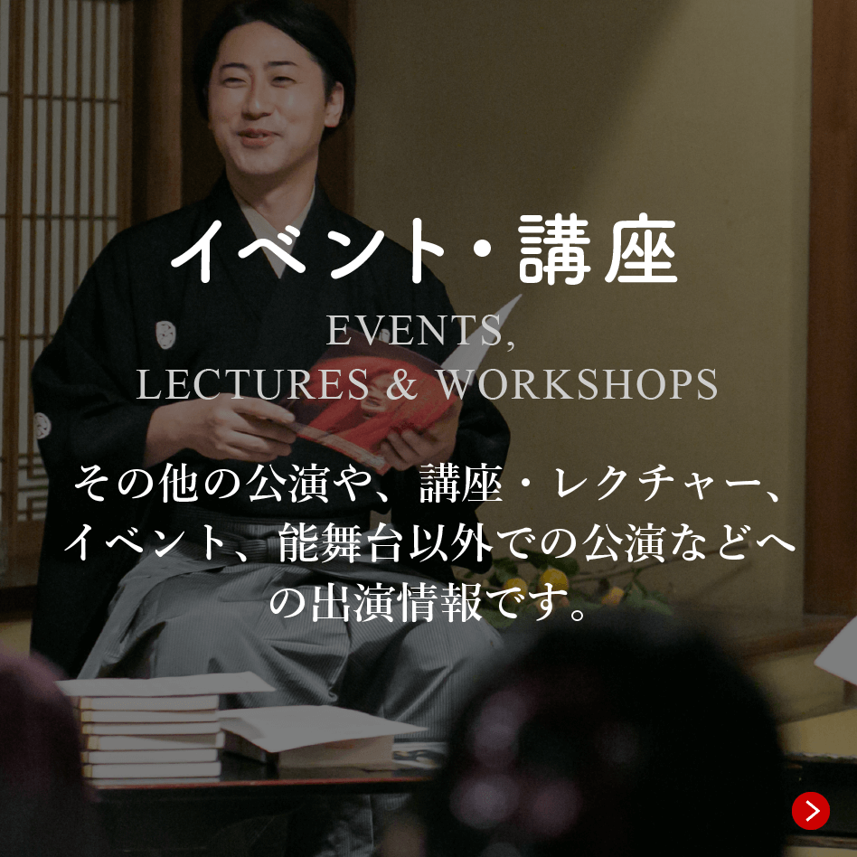 能楽をより身近なものとして体験していただくため、様々なご依頼を承っております。各種イベントや記念式典への出張公演をはじめ、学校教育の現場におけるワークショップ、企業様向けのビジネス講座など、ご要望に合わせたプログラムをご提案いたします。日本の伝統が息づく特別な時間を、皆様の様々なシーンにお届けします。どうぞお気軽にご相談ください。