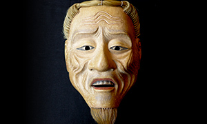 The masks of old man are referred as joumen in Noh. Its characteristics are tied hair with high cheek bones and though they appear to be old man-like with their thin figure, the teeth are straight. There are all kinds such as Koushijou or Sankoujou in Jou, but jous that have their own names have design characteristics and each represents the masks' personality.