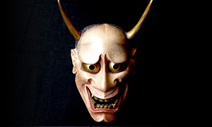 Hannya or Namanari (a mask,that is almost becoming Hannya, whose horns are beginning to grow) are categorized in the snake group of the demon mask but this is different from the mask of demon god. Instead it represents a human's demon that is born from female feelings such as jealousy, grudge, and sorrow. The fierceness of obsession of the horrifying but sorry demon that inhabits inside of human is designed.